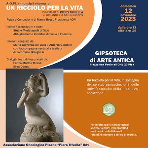 Il 12 novembre 2023 torna, dopo 20 edizioni, l’ultima nel 2016, Un Ricciolo per la Vita, evento-incontro con il territorio, in sostegno al SERVIZIO PARRUCCHE una delle attività più note della nostra Associazione che cerca di contrastare il trauma della perdita dei capelli che consegue alla terapia antitumorale, offrendo una parrucca.